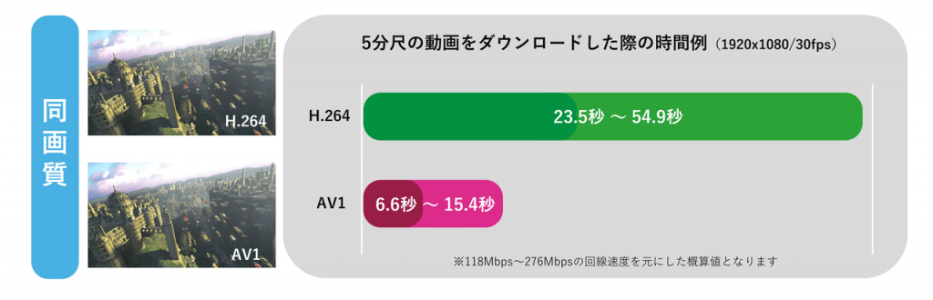 Improved compression means shorter download times—up to 35% faster compared to H.264.