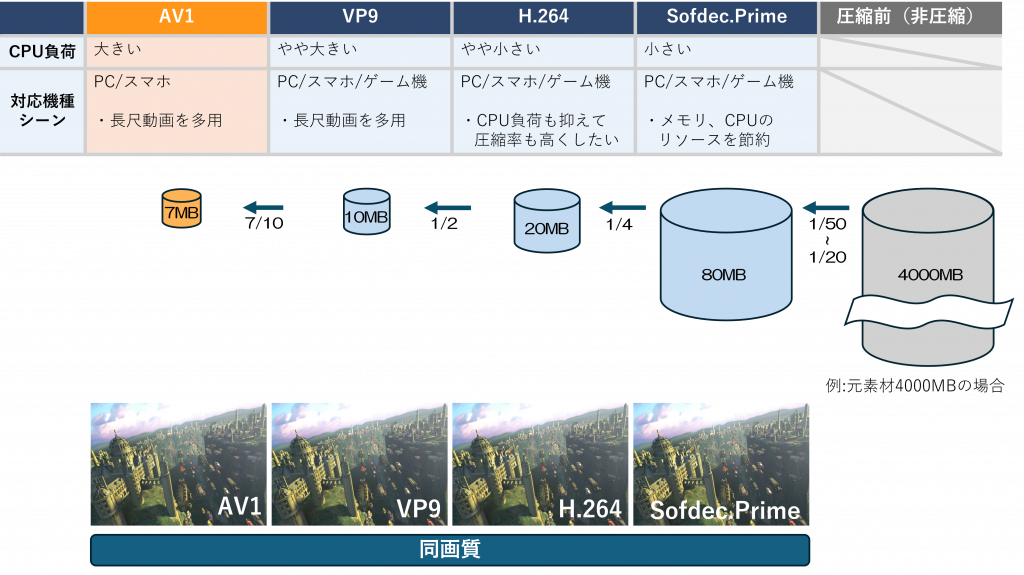 For smartphone game titles, AV1 is the ideal choice thanks to its high compression ratio and compatibility with advanced playback features.