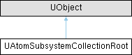 UAtomSubsystemCollectionRoot Root UObject used to anchor UAtomEngineSubsystems to the FAtomRuntime.