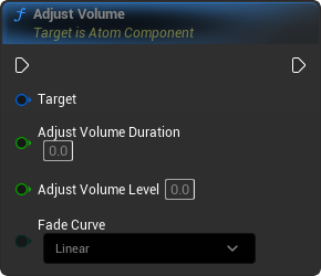 | Adjust Volume Level Float (single-precision) | The new volume to set the AtomComponent to. |