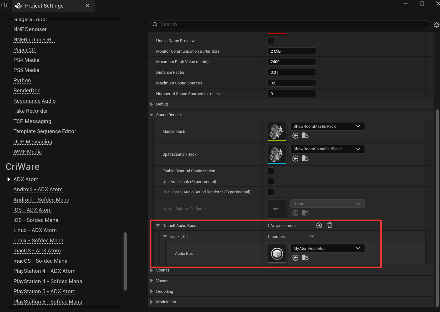 有关更多信息,请参阅ADX声音渲染器 AtomRack 和 AtomBus 概述。