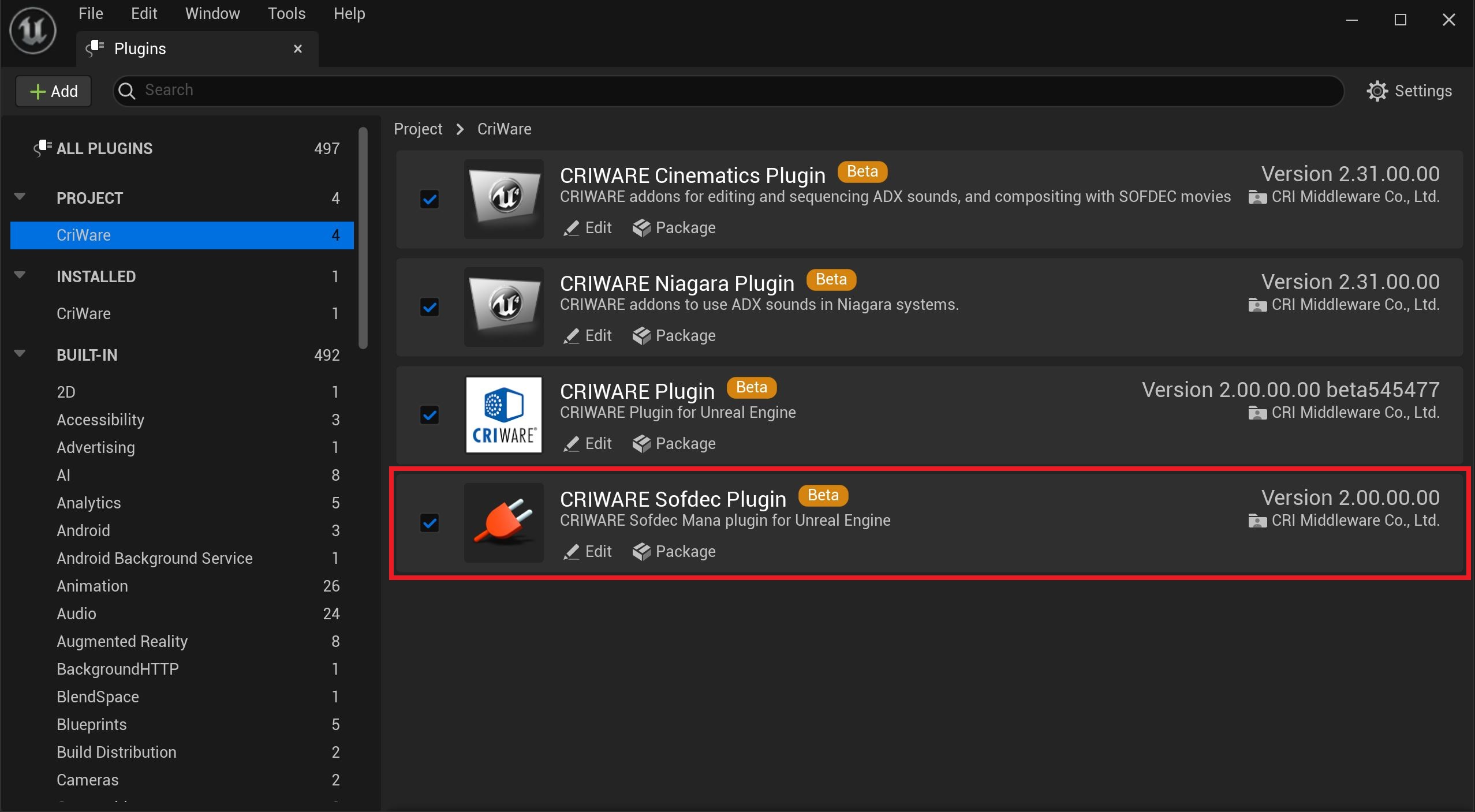 Plug-ins for CriWare solutions.